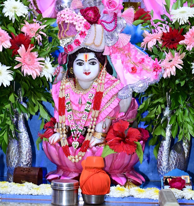 In conclusion, it can be said that in view of Rev. Prabhushri, this Satyayuga Shri Ramji Mandir is a Chaitanya Dham. He had many a times visited this Shri Temple in the past. He had also divine fervours and ‘Darshans’ (glimpse). On account of such high feelings for this place, he had accepted the invitation for, performing the ‘Pran-Pratishta’ ceremony of this Shri Temple. Not only this, He had performed immense amount of ‘Tapasya’ (penance) in order to awaken the Shri Temple to be alive with Pran (life-breadth). If one makes a most minute study of this Shri Temple, looking ordinary from outside, then one will find many high spiritual matters incorporated in it. For example, Shri Bhagwan Ramchandraji installed in the Shri Temple is with four hands. Now only ‘Paratpar’ form of Shri Vishnu Bhagwan is having four hands. And so, the meaning of the form installed in the Shri Temple is that Para-Brahm (Shri Vishnu Bhagwan) Parmatma from whom all the true Incarnations have manifested, is existing in His very sat-chit-Anand Form as Shri Ramchandraji Bhagwan. Hence, here there is not only the Incarnation of Ramchandraji -The son of King Dasharatha in this form but all the true Incarnations are included in it.